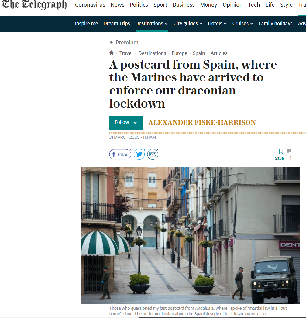 A postcard from Spain, where the Marines have arrived to enforce our draconian lockdown