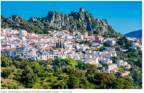 So, I push on through the wild and vertiginous mountain roads to stay with friends in the most picture-perfect of white-walled Spanish towns, Gaucín, the birthplace of opera’s most famous heroine, Carmen.