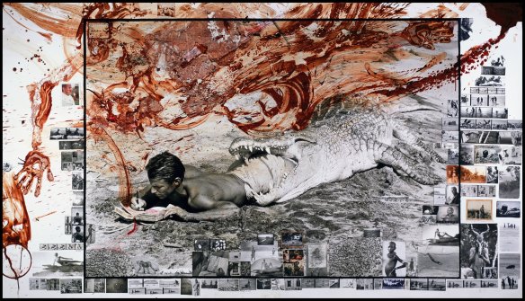 No financier, Peter became a photographer, focusing on his beloved Africa. Always trying to get the shot others couldn’t — in 1996 he was gored by an elephant — he developed a signature style of collaging the original image with handwritten notes and color washes, often using materials from the moment the photo was taken, such as elephant dung or his own blood. His works, enhanced by his personal cachet, sold well in exhibitions and from his friend Michael Hoppen’s gallery in London’s Chelsea.