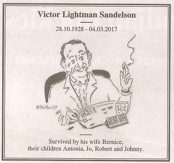 I was saddened to see in The Times that my family friend Victor Sandelson has died.